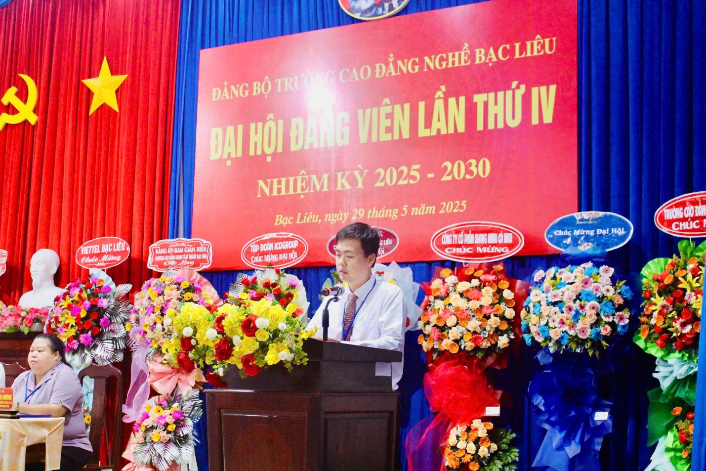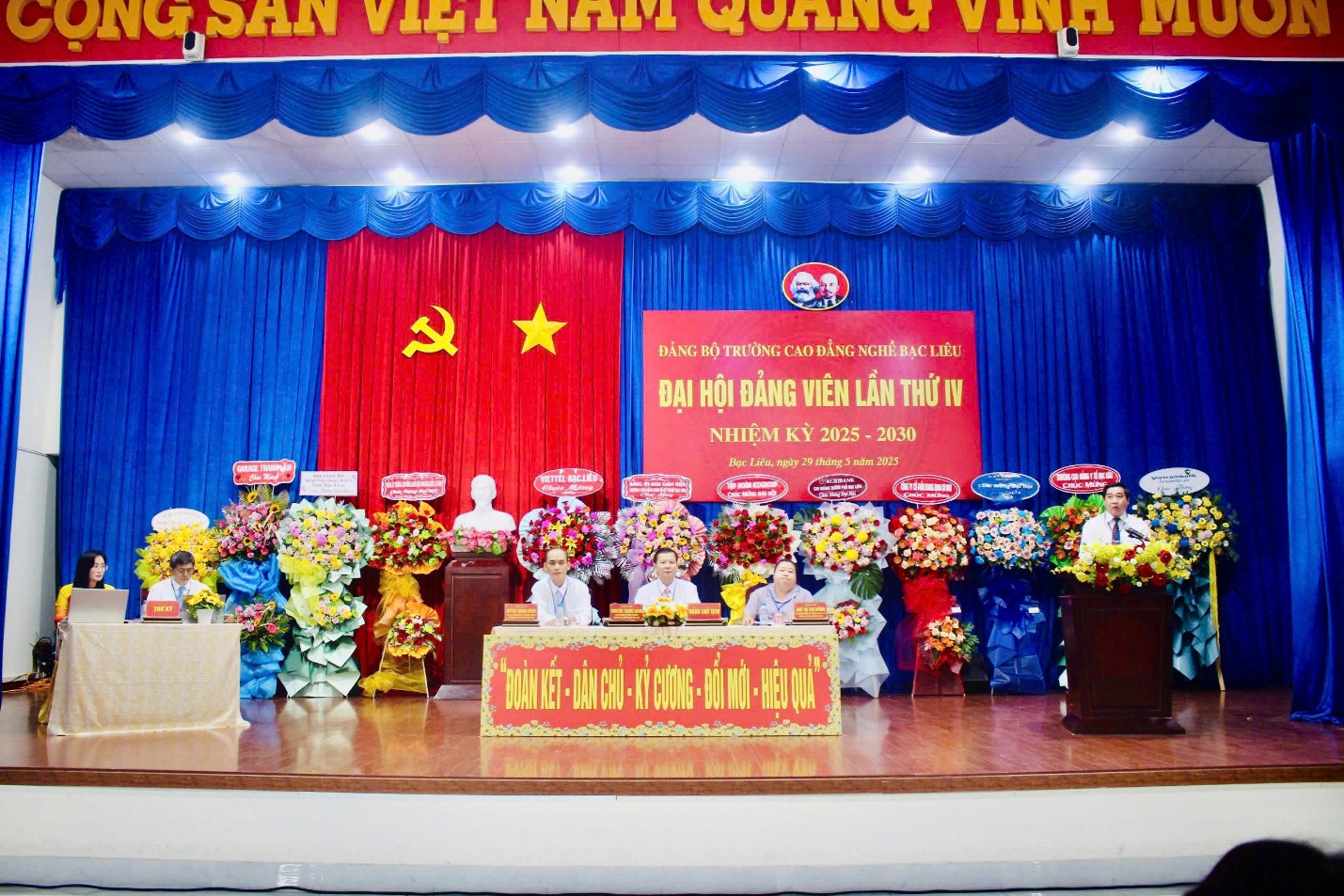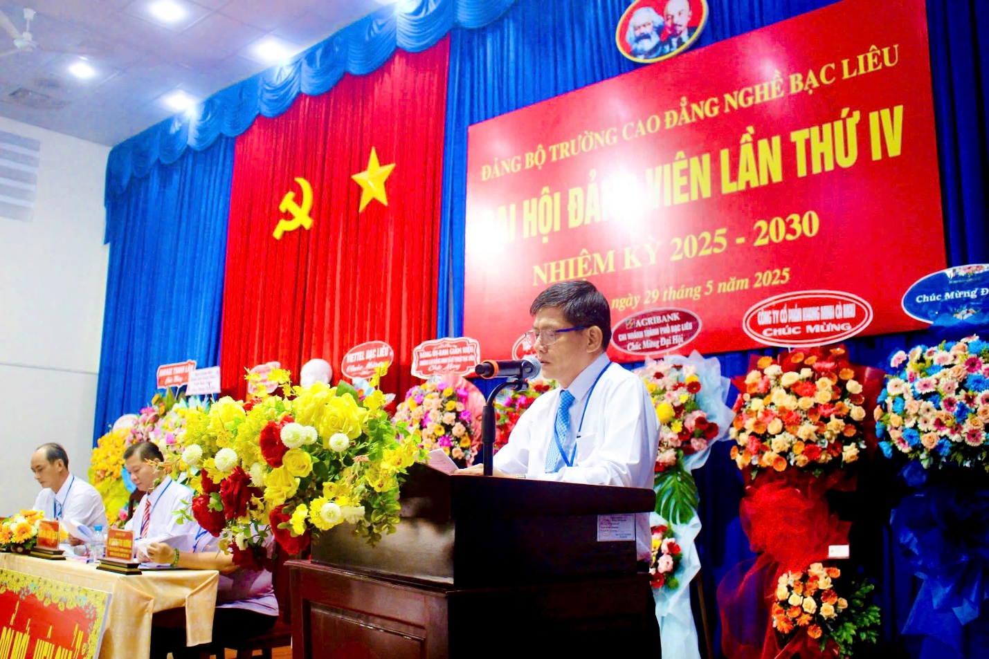 Ngày 29/5/2025, Đảng bộ Trường Cao đẳng nghề Bạc Liêu tổ chức Đại hội đảng viên lần thứ IV, nhiệm kỳ 2025-2030, Đại hội được tiến hành trong không khí toàn Đảng, toàn dân, toàn quân ta đang thi đua lập thành tích chào mừng Đại hội Đảng bộ các cấp, tiến tới Đại hội toàn quốc lần thứ XIV của Đảng. Để Đại hội kết tinh trí tuệ, ý chí nguyện vọng của Đảng bộ, đảng viên, viên chức, học sinh sinh viên trong toàn trường, Đảng bộ Trường Cao đẳng nghề Bạc Liêu xác định phương châm Đại hội: “Đoàn kết - Dân chủ - Kỷ cương - Đổi mới - Hiệu quả”. Đến tham dự và chỉ đạo Đại hội có đồng chí Lê Hoài Bảo, Phó Bí thư Đảng ủy UBND tỉnh, lãnh đạo các phòng ban chuyên trách của Đảng ủy UBND tỉnh. Về phía Đảng bộ Trường Cao đẳng nghề Việt Nam - Hàn Quốc Cà Mau có đồng chí Từ Hoàng Ân, Bí thư Đảng ủy, Hiệu trưởng cùng các đồng chí trong đoàn đến tham dự. Về phía Đảng bộ Trường Cao đẳng kinh tế - Kỹ thuật Bạc Liêu có đồng chí Trần Văn Út Chính, Phó Bí thư Đảng ủy. Về phía Đảng bộ Trường Cao đẳng nghề Bạc Liêu có đồng chí Nguyễn Thanh Sang, Bí thư Đảng ủy, Hiệu trưởng; đồng chí Huỳnh Thanh Hùng, Phó Bí thư Đảng ủy, Phó Hiệu trưởng, các đồng chí trong Ban Thường vụ, Ban Chấp hành Đảng bộ trường và toàn thể 59 đảng viên cùng tham dự.