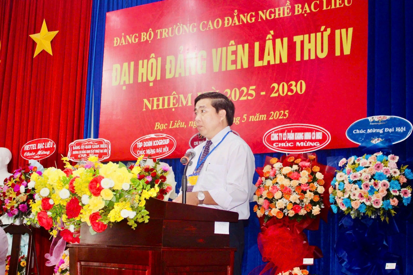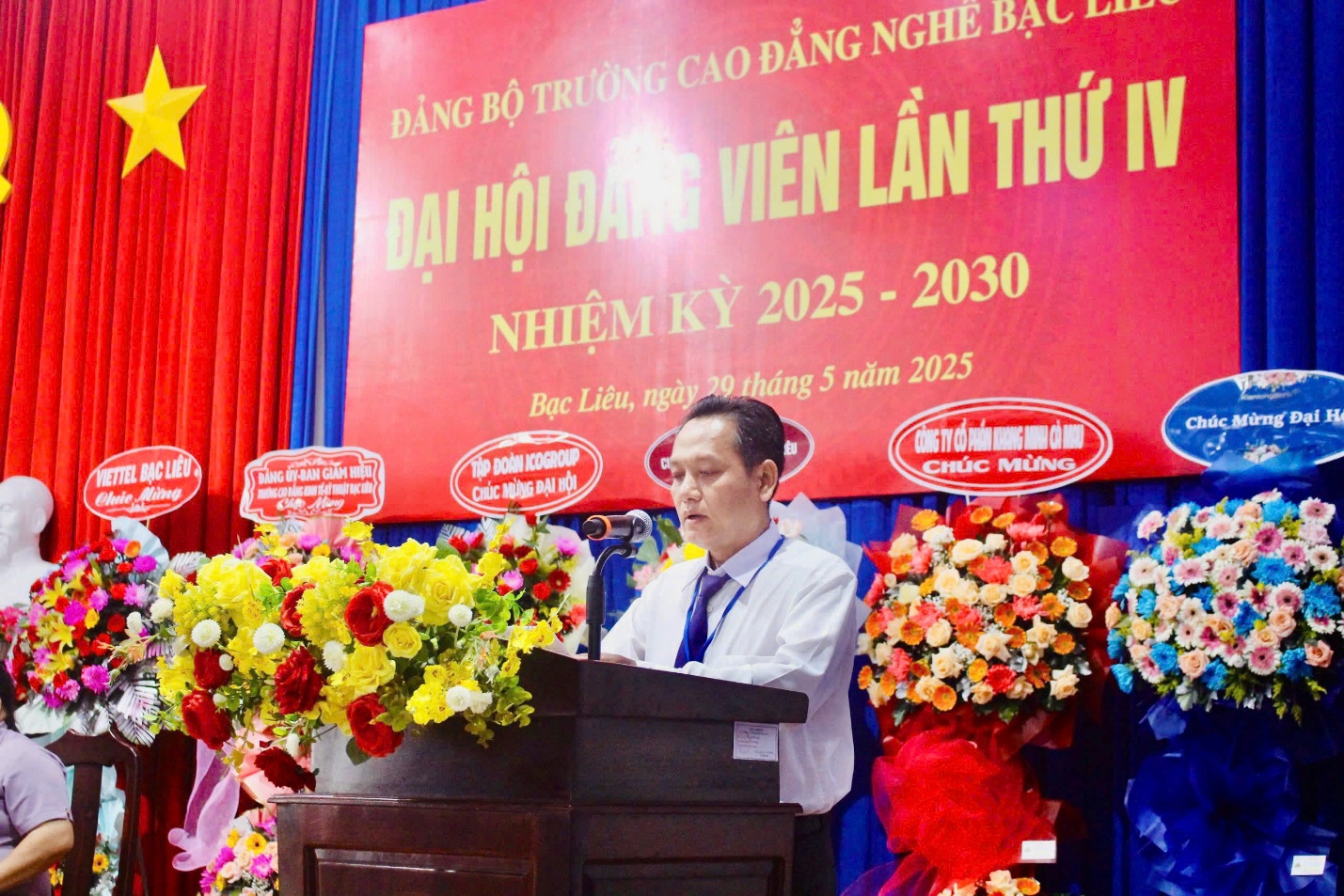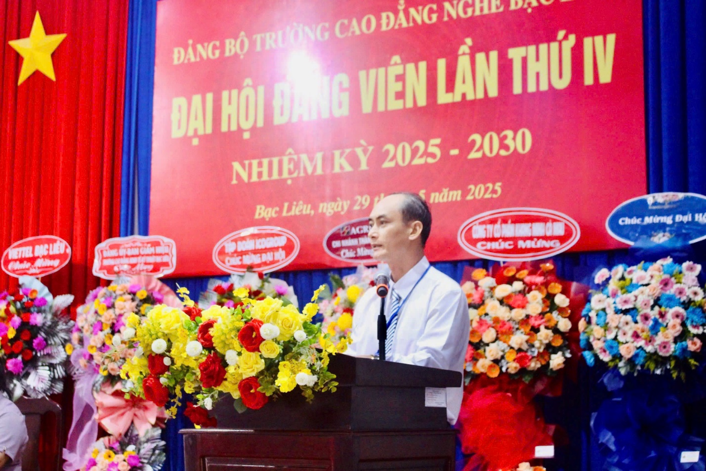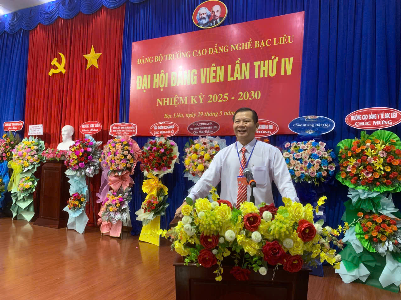 Ngày 29/5/2025, Đảng bộ Trường Cao đẳng nghề Bạc Liêu tổ chức Đại hội đảng viên lần thứ IV, nhiệm kỳ 2025-2030, Đại hội được tiến hành trong không khí toàn Đảng, toàn dân, toàn quân ta đang thi đua lập thành tích chào mừng Đại hội Đảng bộ các cấp, tiến tới Đại hội toàn quốc lần thứ XIV của Đảng. Để Đại hội kết tinh trí tuệ, ý chí nguyện vọng của Đảng bộ, đảng viên, viên chức, học sinh sinh viên trong toàn trường, Đảng bộ Trường Cao đẳng nghề Bạc Liêu xác định phương châm Đại hội: “Đoàn kết - Dân chủ - Kỷ cương - Đổi mới - Hiệu quả”. Đến tham dự và chỉ đạo Đại hội có đồng chí Lê Hoài Bảo, Phó Bí thư Đảng ủy UBND tỉnh, lãnh đạo các phòng ban chuyên trách của Đảng ủy UBND tỉnh. Về phía Đảng bộ Trường Cao đẳng nghề Việt Nam - Hàn Quốc Cà Mau có đồng chí Từ Hoàng Ân, Bí thư Đảng ủy, Hiệu trưởng cùng các đồng chí trong đoàn đến tham dự. Về phía Đảng bộ Trường Cao đẳng kinh tế - Kỹ thuật Bạc Liêu có đồng chí Trần Văn Út Chính, Phó Bí thư Đảng ủy. Về phía Đảng bộ Trường Cao đẳng nghề Bạc Liêu có đồng chí Nguyễn Thanh Sang, Bí thư Đảng ủy, Hiệu trưởng; đồng chí Huỳnh Thanh Hùng, Phó Bí thư Đảng ủy, Phó Hiệu trưởng, các đồng chí trong Ban Thường vụ, Ban Chấp hành Đảng bộ trường và toàn thể 59 đảng viên cùng tham dự.