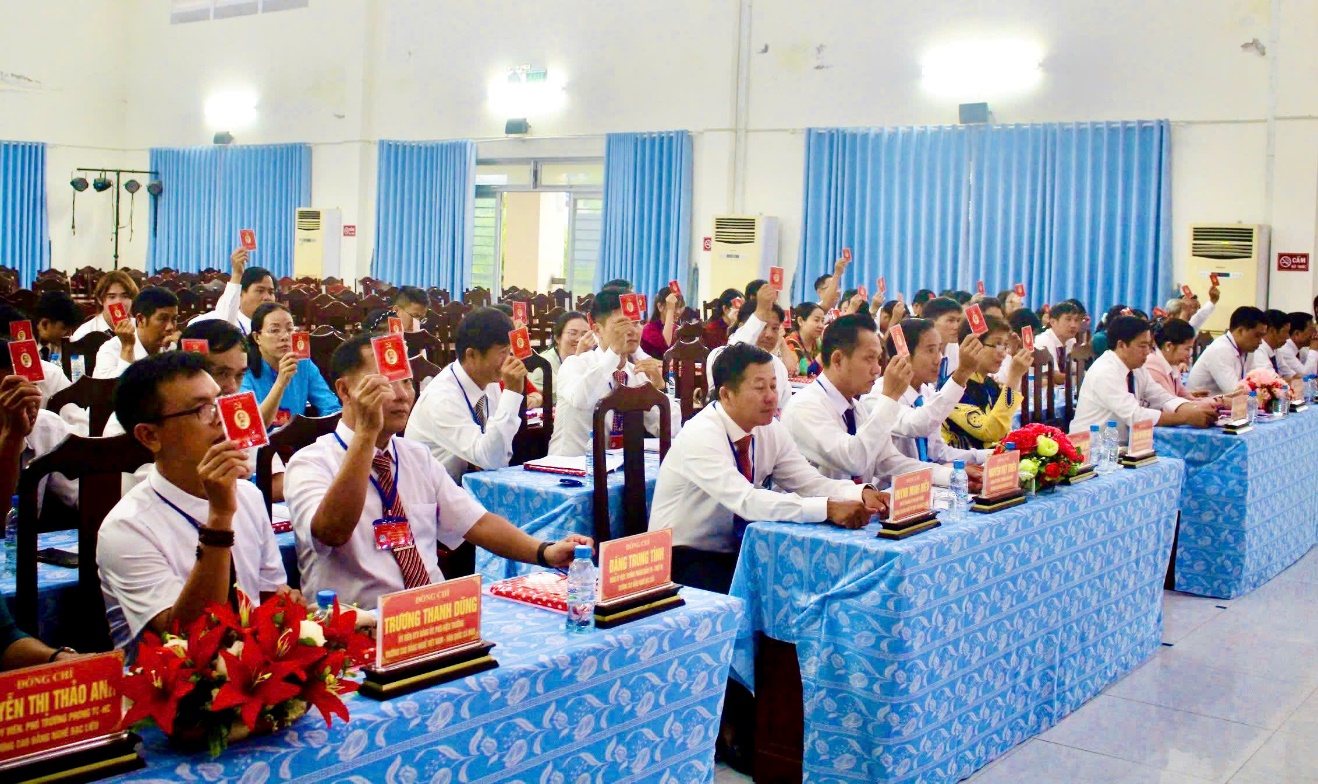 Đảng viên biểu quyết thông qua Nghị quyết Đại hội