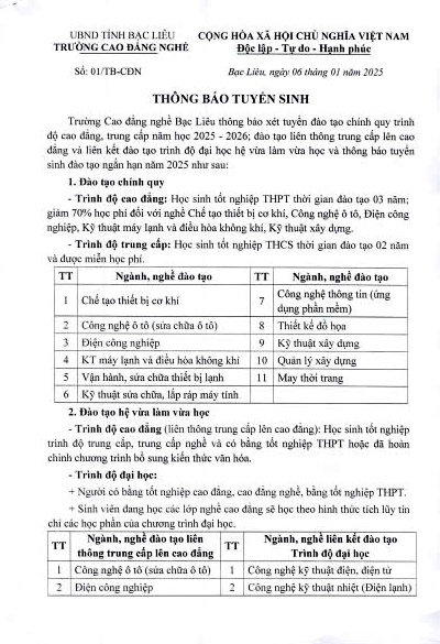 Trường Cao đẳng nghề Bạc Liêu tổ chức triển khai quyết định nghỉ hưu đối với viên chức