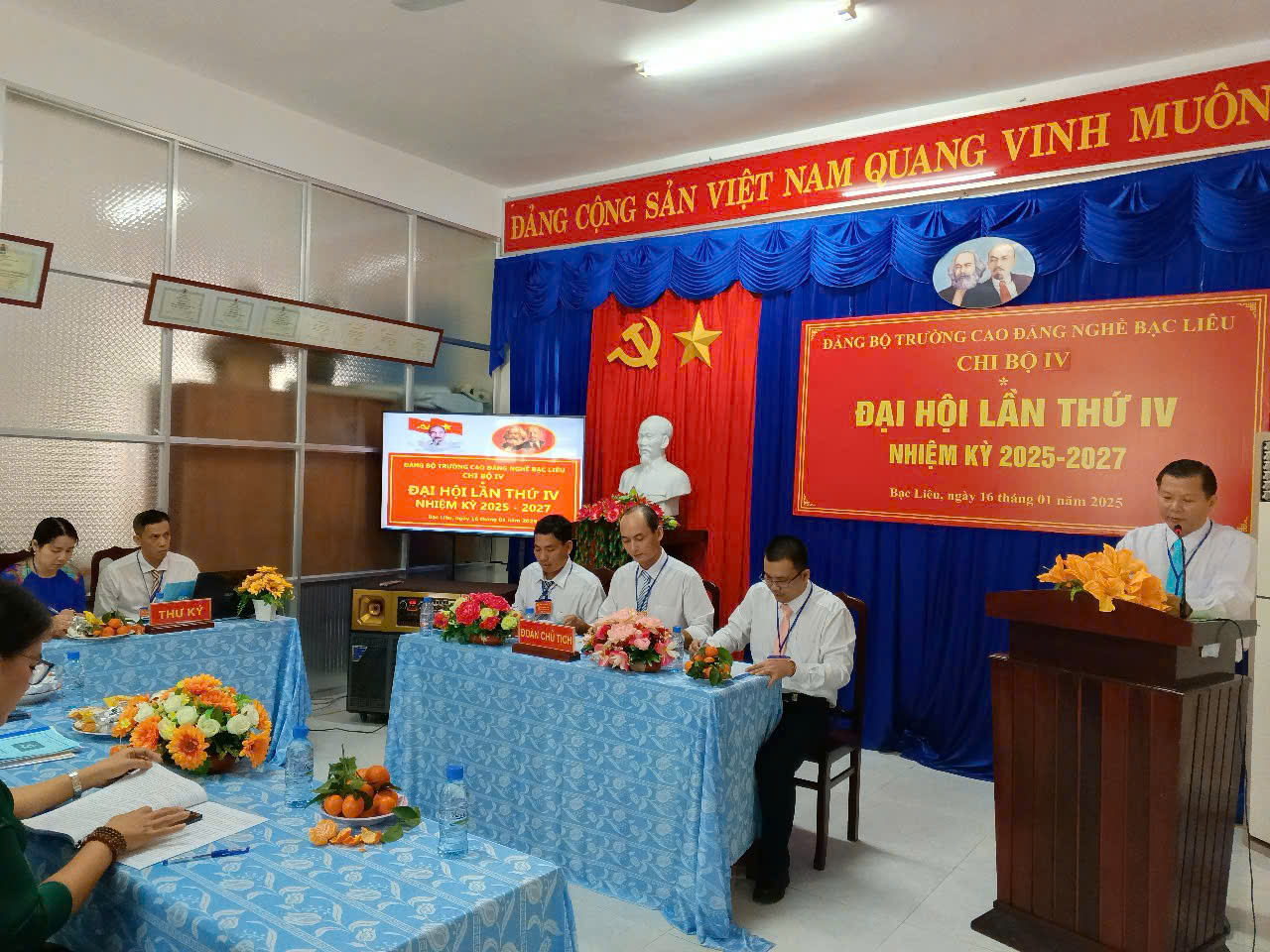 Chi bộ IV, Đảng ủy Trường Cao đẳng nghề Bạc Liêu tổ chức thành công đại hội chi bộ lần thứ IV, nhiệm kỳ 2025 – 2027