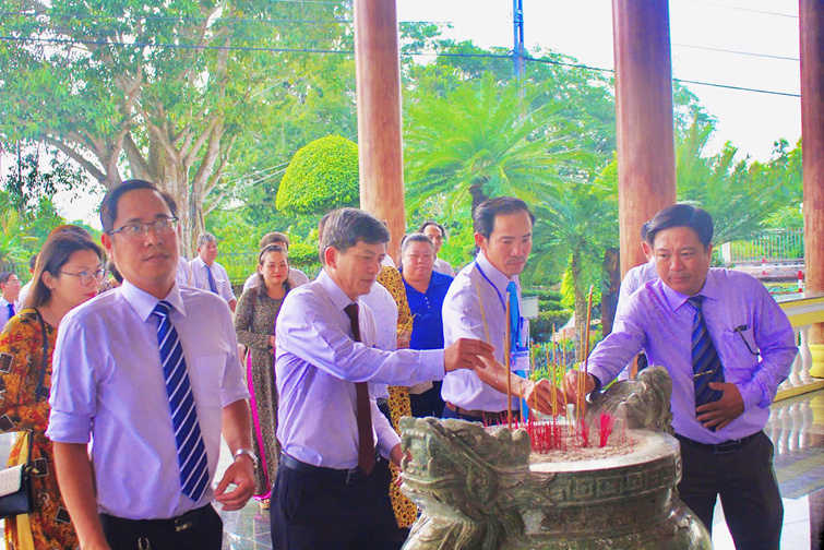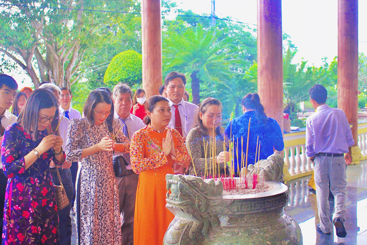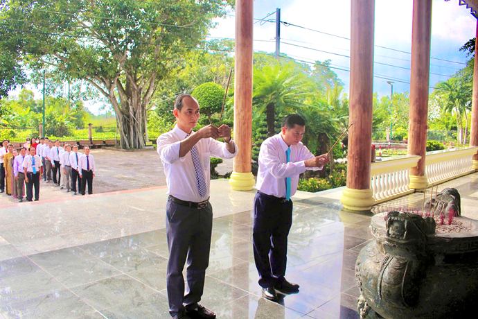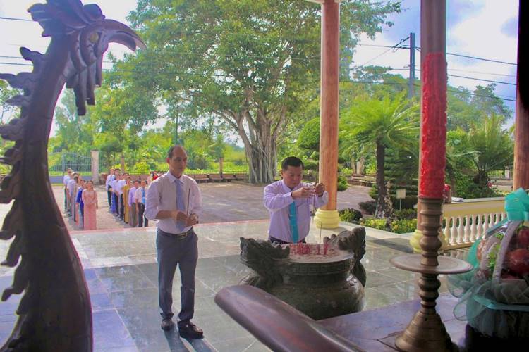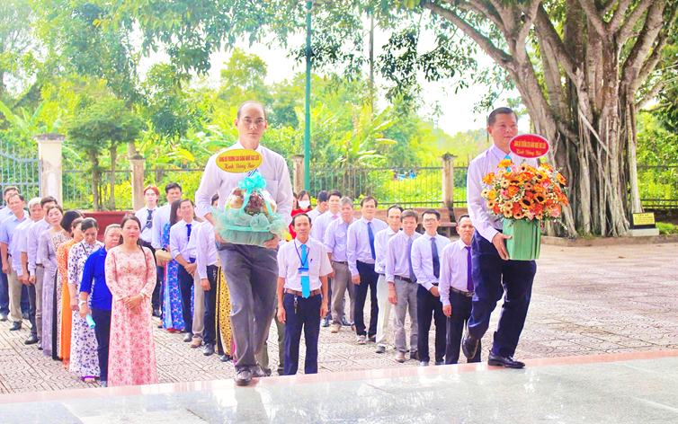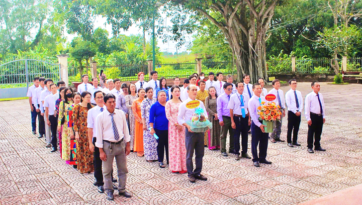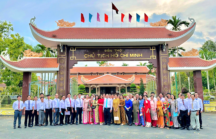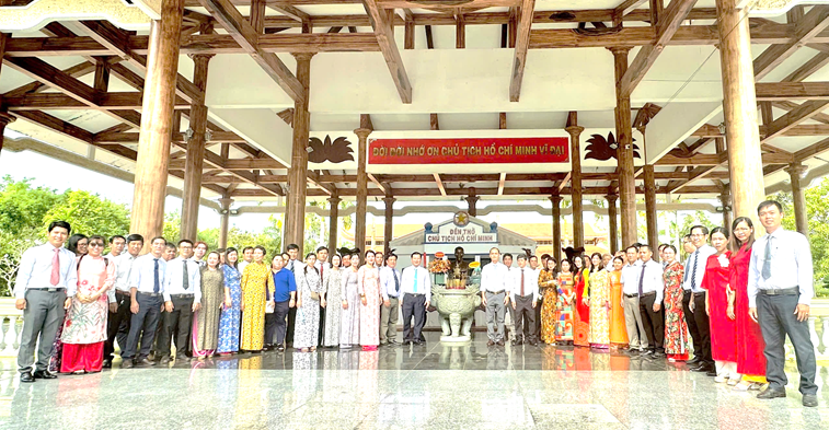 Trước Đền thờ Chủ tịch Hồ Chí Minh vĩ đại, đoàn đã bày tỏ lòng thành kính và biết ơn vô hạn đối với Bác - vị lãnh tụ thiên tài của dân tộc, danh nhân văn hóa thế giới, người đã hiến dâng cả đời mình cho độc lập, tự do, hạnh phúc của nhân dân và trân trọng kính dâng Bác những thành tích xuất sắc mà đảng bộ nhà trường đã toàn tâm, toàn ý quyết liệt thực hiện. Đồng chí Nguyễn Thanh Sang - Bí thư đảng ủy, Hiệu trưởng nhà trường tự hào báo cáo thành tích mà đảng bộ đã dốc hết tâm huyết đạt được trong năm 2024 và hứa với Bác sẽ luôn tiên phong, gương mẫu cùng với tập thể đảng bộ nhà trường cố gắng vượt khó khăn, gian khổ tiếp tục gặt hái thành công trong thời gian tới.