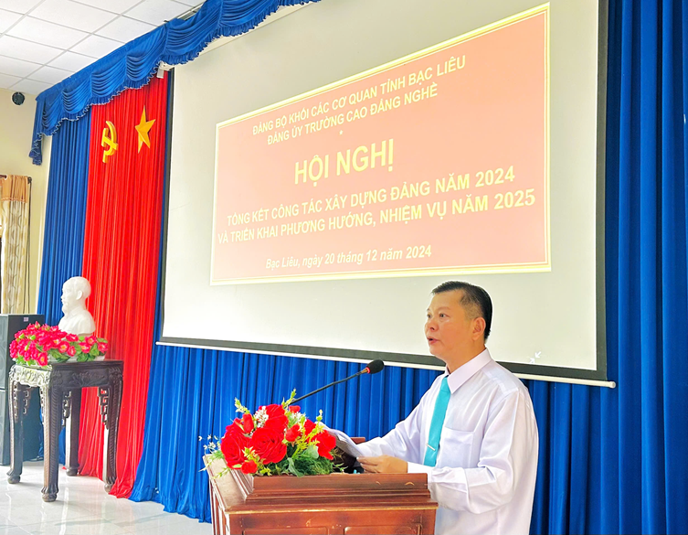 Năm 2024, với quyết tâm chính trị và tinh thần trách nhiệm cao, toàn thể cán bộ, đảng viên Trường Cao đẳng Nghề Bạc Liêu đã đoàn kết nhất trí, chủ động, sáng tạo, nỗ lực thực hiện hoàn thành xuất sắc nhiệm vụ được giao, góp phần quan trọng vào công tác xây dựng, chỉnh đốn Đảng ngày càng trong sạch vững mạnh, thực hiện tốt chiến lược phát triển nhà trường, từng bước nâng cao năng lực, bồi dưỡng nhân tài, hun đúc đạo đức cách mạng người đảng viên chân chính, đảm bảo đáp ứng tốt yêu cầu ngày càng cao của xã hội hiện đại trong kỷ nguyên số.